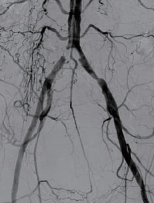 両側CIA偏心性石灰化入口部病変をTRIとゴア® バイアバーン® VBX バルーン拡張型ステントグラフト ロープロファイル VBX デリバリーシステムで攻略する