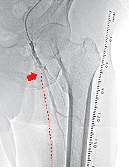 浅大腿動脈入口部近位からの長区域慢性完全閉塞病変に対するゴア® バイアバーン® ステントグラフト留置の一例